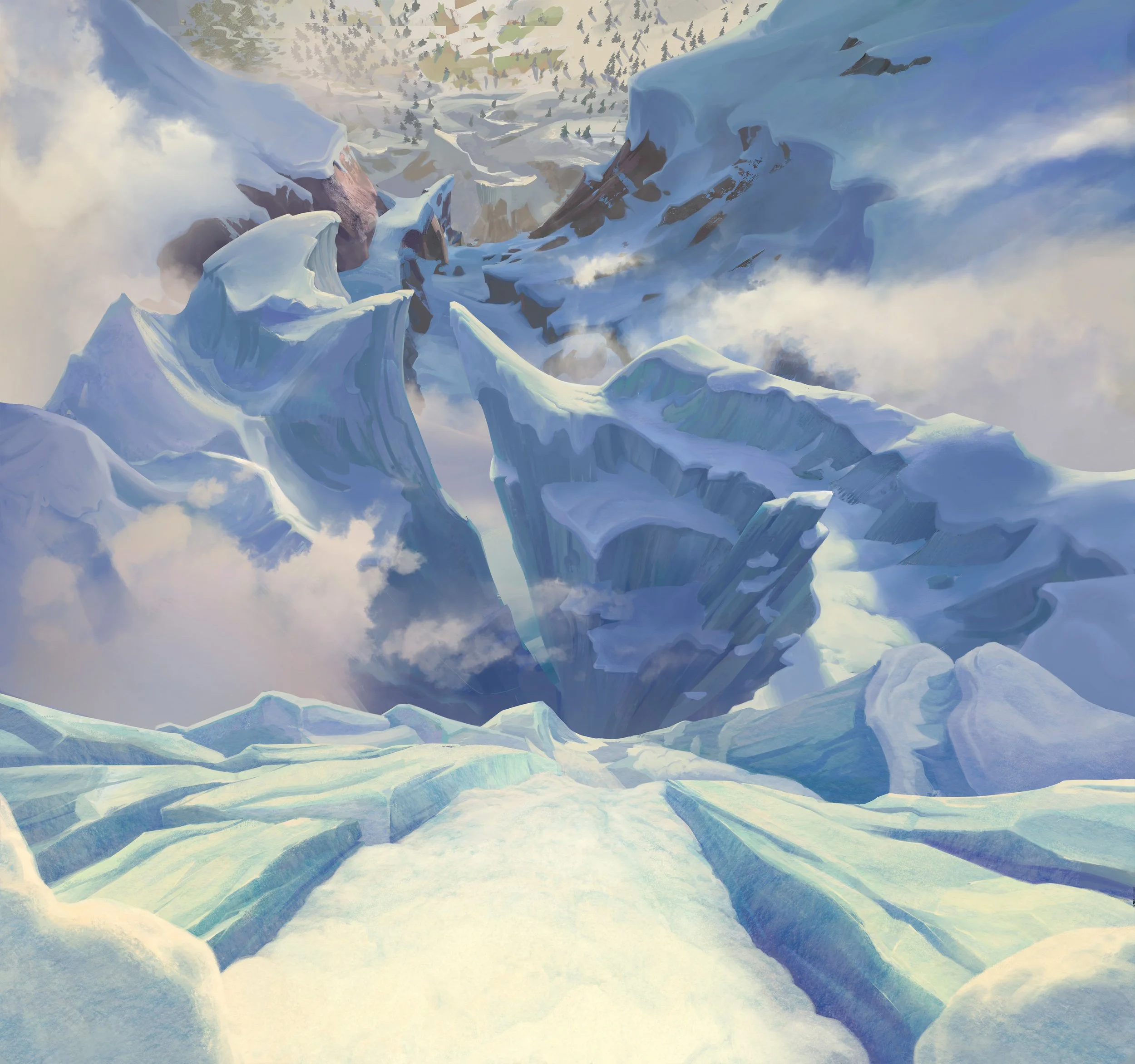 I only did a few matte paintings for BWD, but I was quite proud of this one. I worked on it with Chad’s input - the most distant layer with the trees is largely his work!